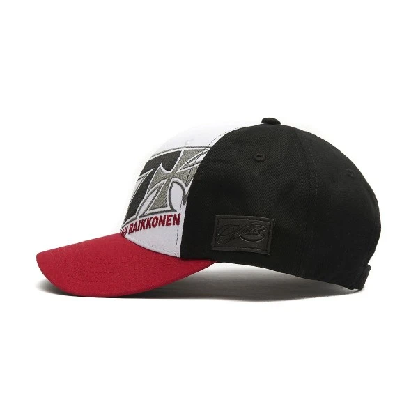 The cap with a classically rounded brim is equipped with a buckle closure for continuous size adjustment. On the white front the “Cross-Seven” is printed, a combination of Kimi’s starting number 7 and the logo of WCC.