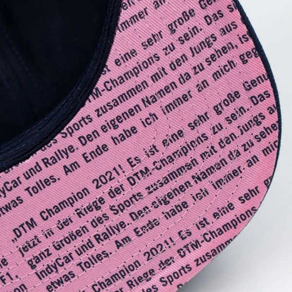 The blue cap is part of the Maximilian Götz collection, which was released in honour of his 2021 DTM championship title. Besides caps, the collection also includes other products such as jumpers, T-shirts and accessories.