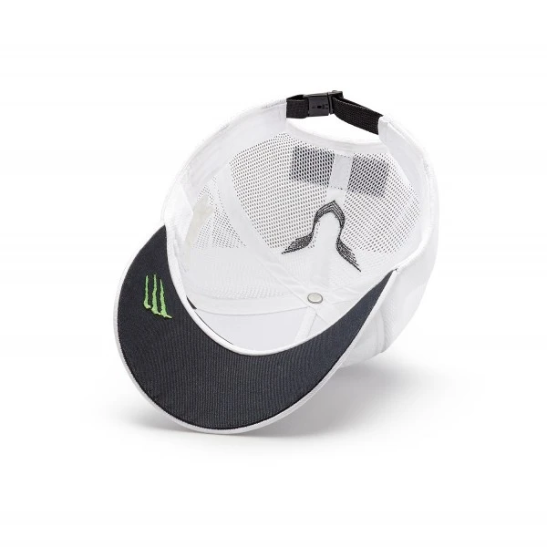 The embroidery on the front shows the Mercedes emblem, the back features the team and driver logo. Another eye-catcher is the lattice pattern design that extends over the entire cap. The clip closure on the back allows the size of the cap to be individually adjusted.