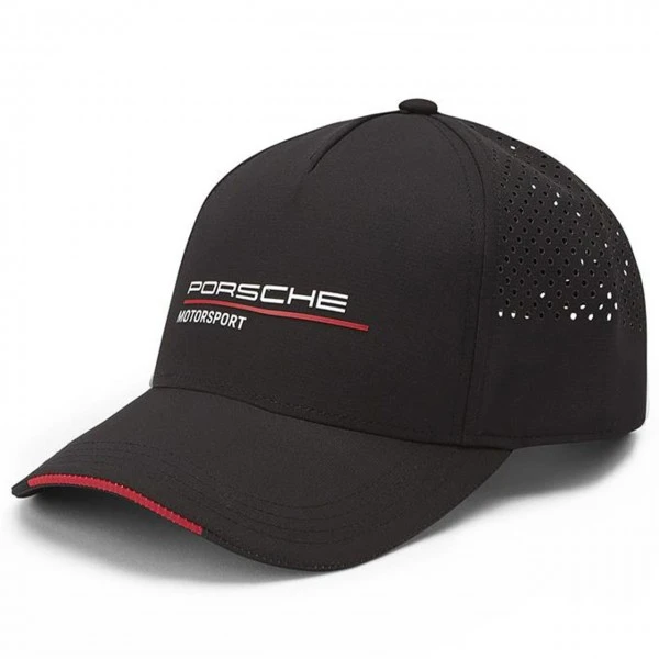 The black cap is part of the Porsche Motorsport collection, which includes not only caps but also other products such as T-shirts, jumpers, jackets and accessories.