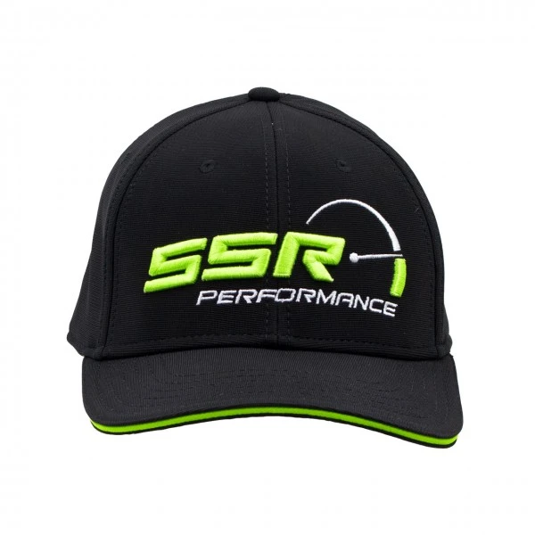 The black cap with round peak from the SSR Performance collection. In addition to caps, the collection also includes other products such as shirts, jumpers, jackets and accessories.